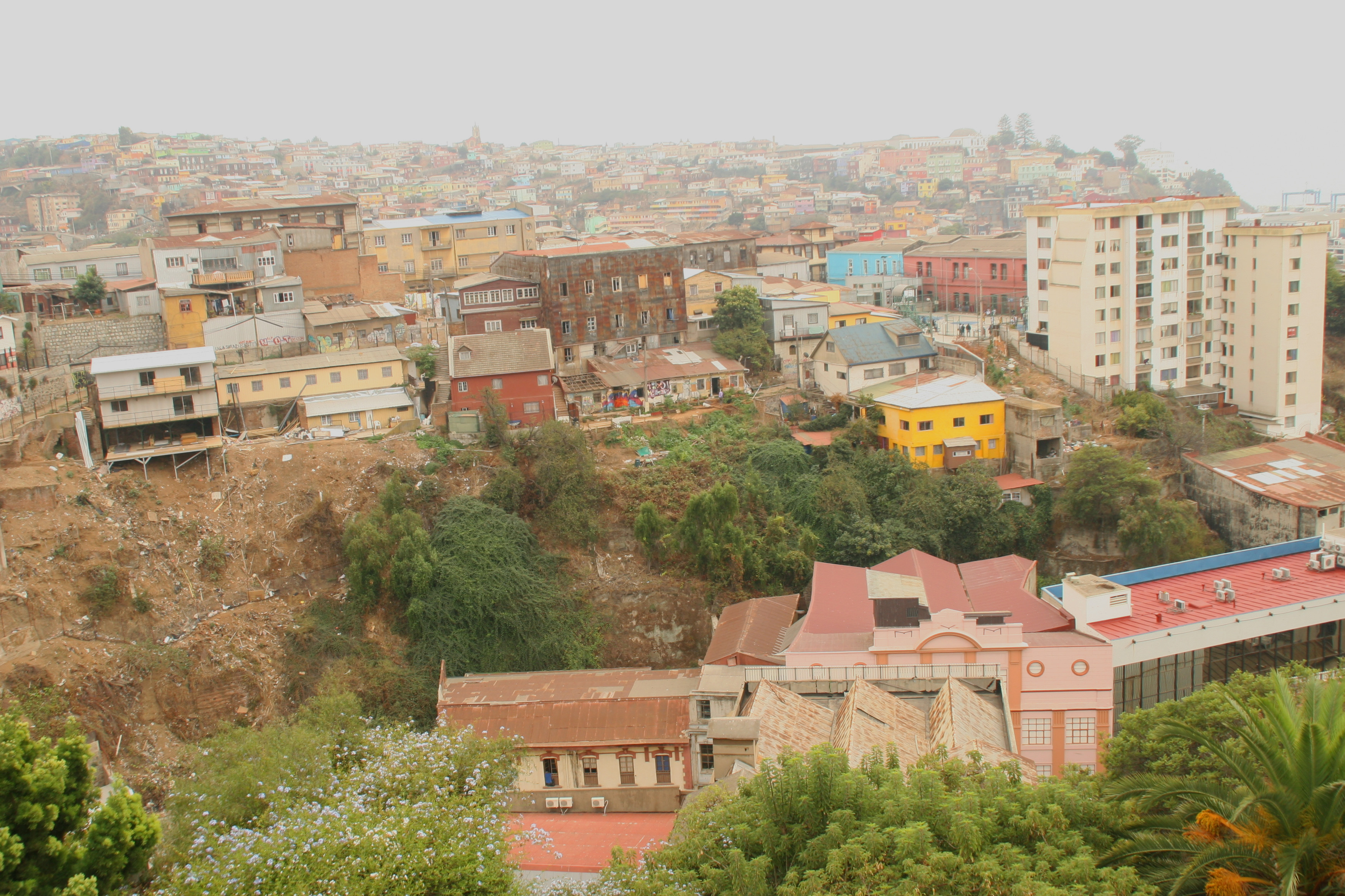 We ate well in Valparaiso, at Restaurant Montealegre, overlooking the vastness of the cityscape, colorful alleyways, precipitous streets, art houses, tucked away eateries, a young crowd, a hip crowd. With 250,000 people, it’s fame and glory enjoying a revival after being left in the dustbin of another century. Valparaiso was an important port for 19th century shipping. The Panama Canal cut off its much of its largesse, cut off its legs, tarnished the star of the Pacific coast. Yet, it endured. Strategically placed, blessed with ocean and mountains, natural resources and determination, a newer generation is overlooking its recent shortcomings.