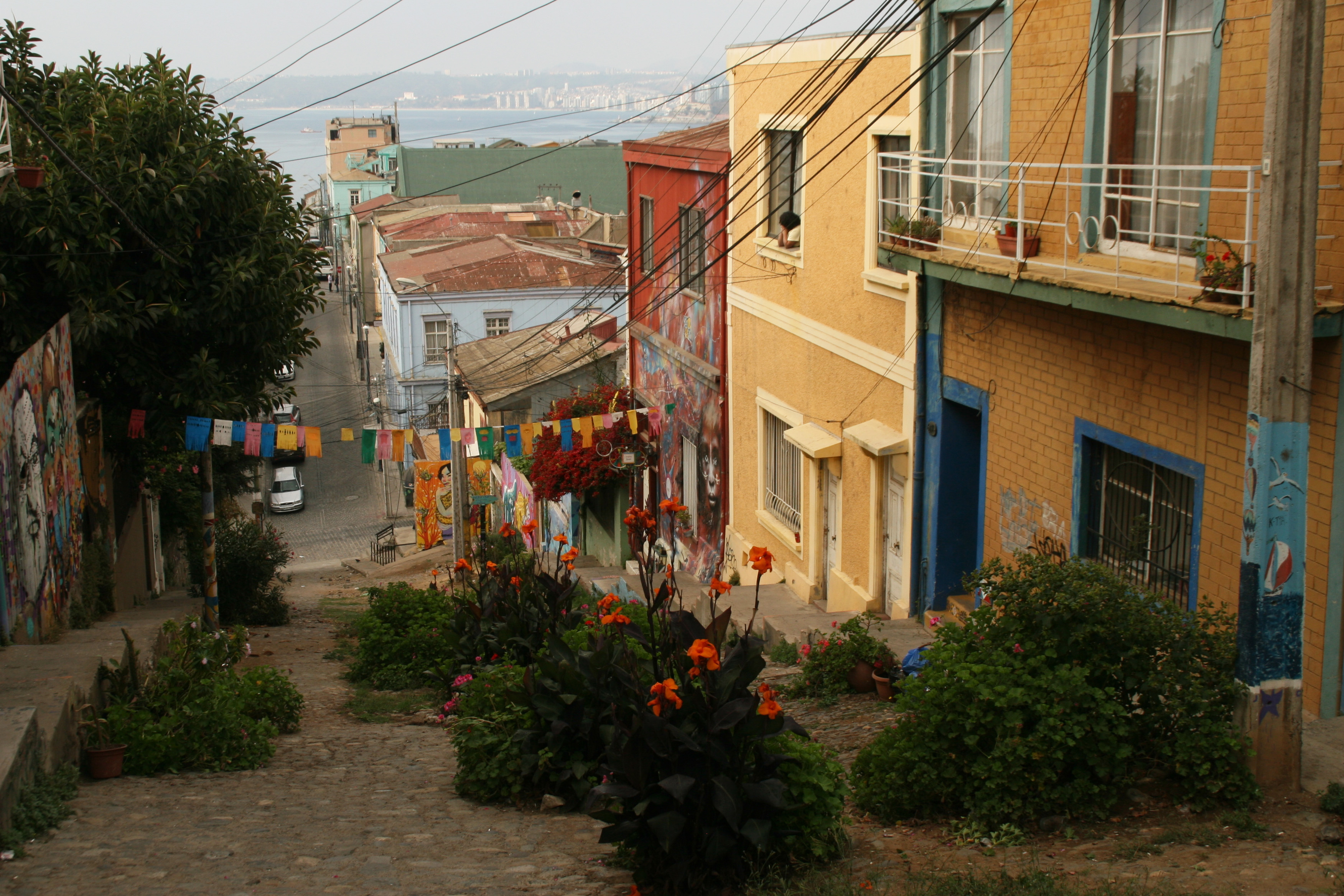 We were in a nice section of town, perhaps “the” nice section. The streets were clean, not as much graffiti, loads of young people inhabited coffee houses and cafes, and there were oodles of boutiques filled with colorful bric-a-brac, tchotchkes and whatnot’s. Valparaiso is a UNESCO designated city, a city with pride and heritage.
